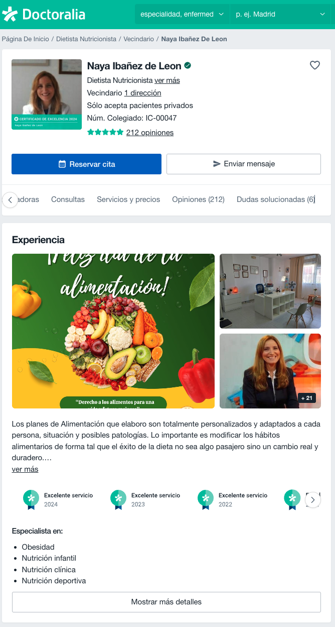 Tengo amplia experiencia como Nutricionista a Nivel Hospitalario (Hospital San Roque Maspalomas, Residencia Médica Asistida Nuestra Señora del Mar, etc.).